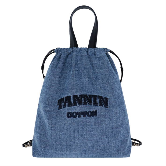 定制雙面背折疊抽繩束口袋 鐳射牛仔布雙肩包 簡易爬山抽繩運動包