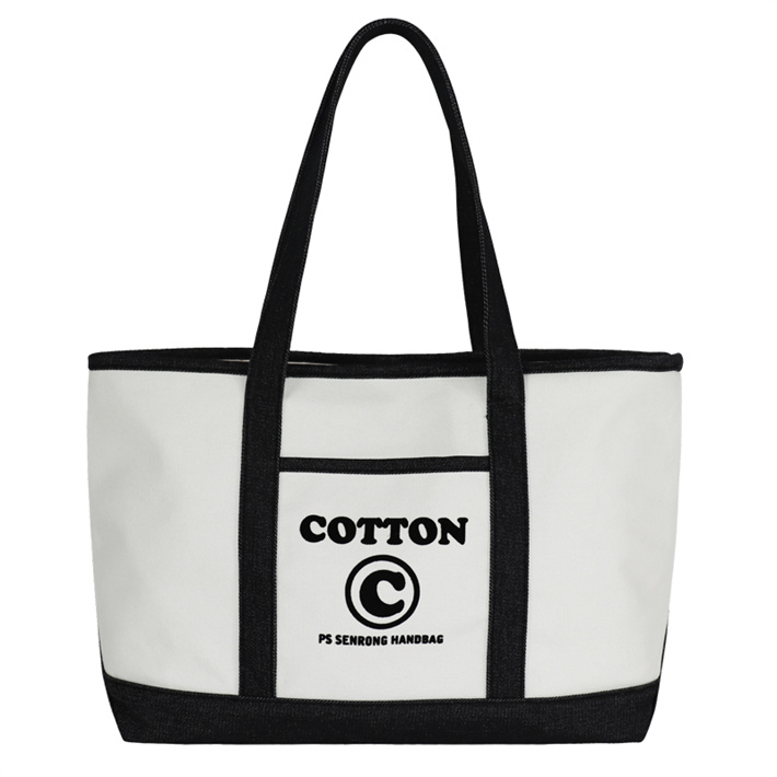 日系簡(jiǎn)約帆布包定制 帆植絨拼接單肩手提包寵物隱蔽包牛仔購(gòu)物袋